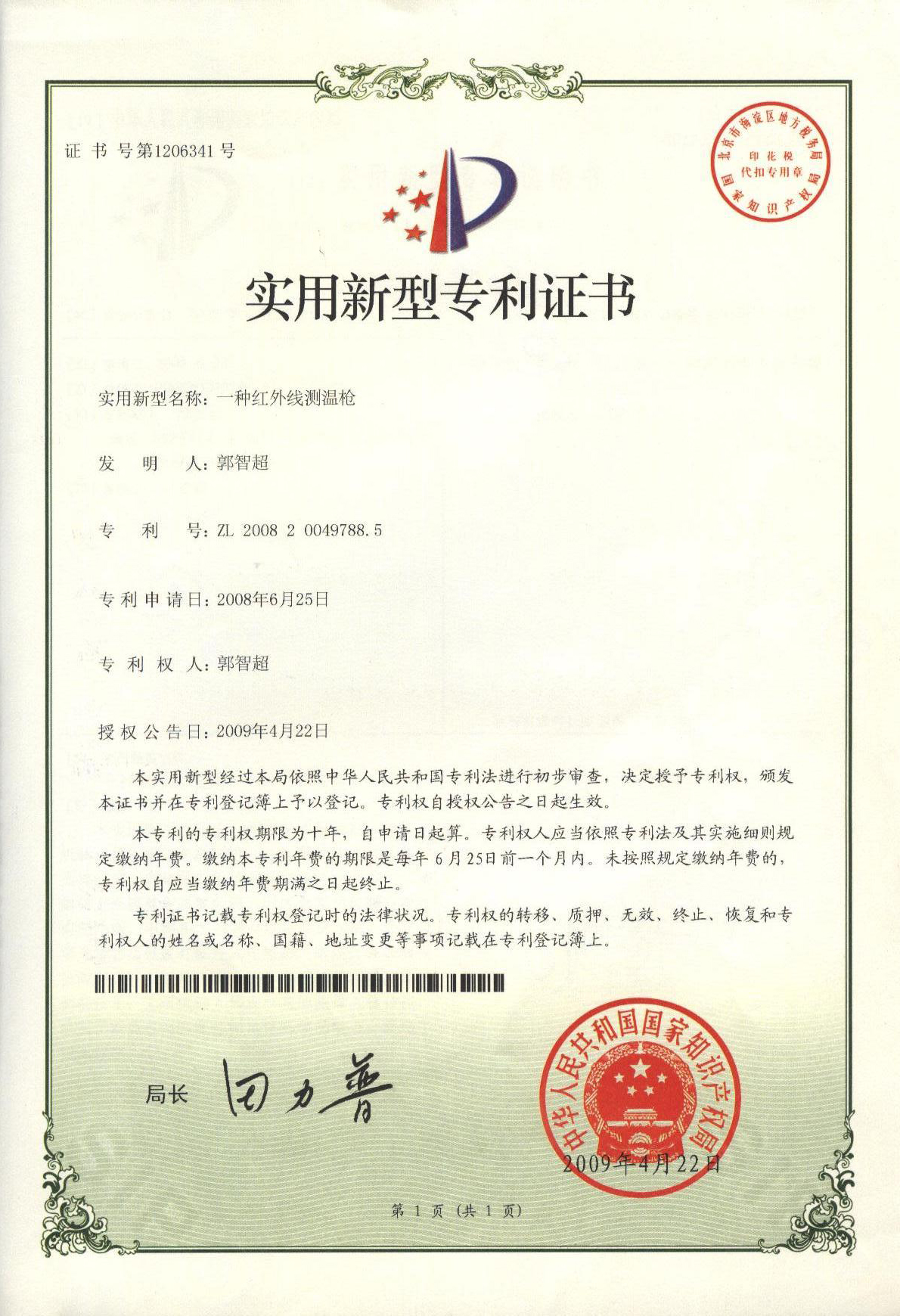 實(shí)用新型專(zhuān)利證書(shū)