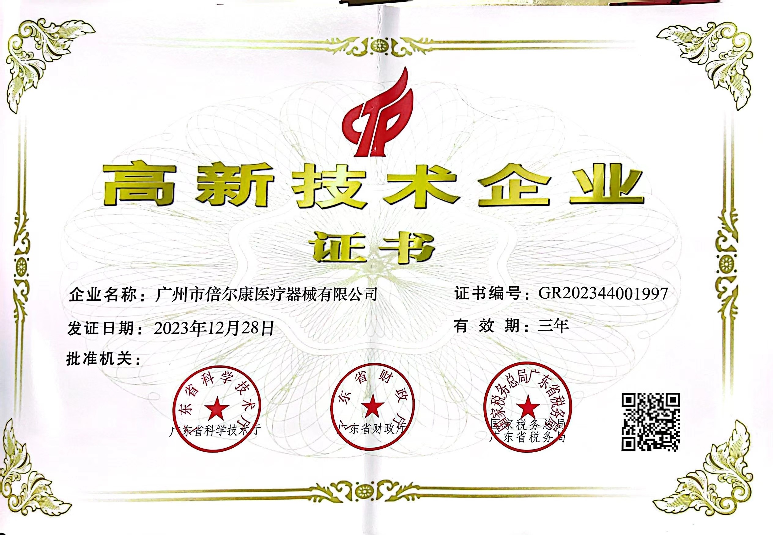 高新技術(shù)企業(yè)證書(shū)