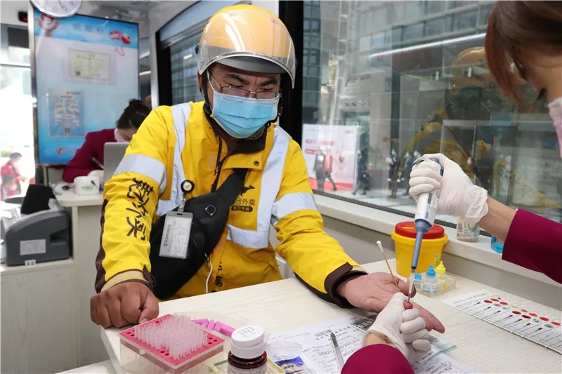 疫情還未結(jié)束,但仍然有不少街坊走出了家門(mén)過(guò)來(lái)獻(xiàn)血。其中一個(gè)外賣(mài)小哥路過(guò),看到我們的獻(xiàn)血車(chē),二話不說(shuō)就擼起了袖子,他說(shuō),我總該做點(diǎn)什么。