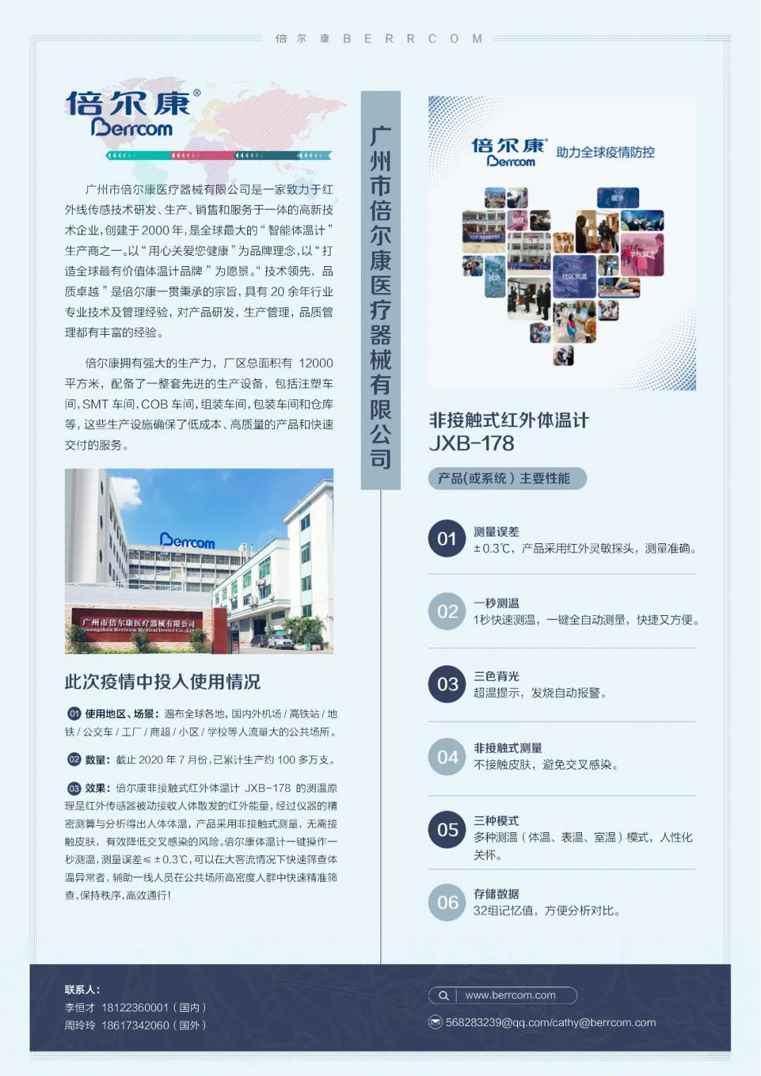 倍爾康及經(jīng)典產(chǎn)品JXB-178就在《抗疫儀器儀表及系統(tǒng)匯編-紅外測(cè)溫產(chǎn)品專(zhuān)輯》中。