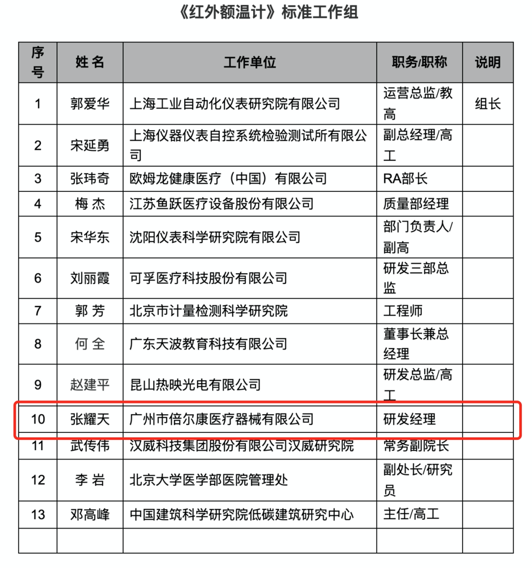 倍爾康參與紅外額溫計(jì)標(biāo)準(zhǔn)制定