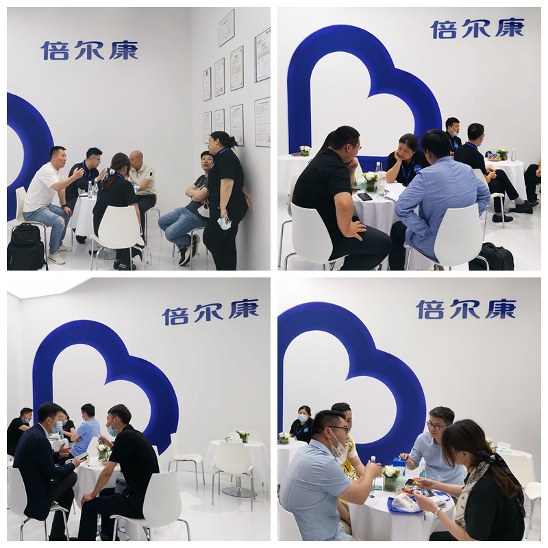 △倍爾康工作人員向客商介紹產(chǎn)品