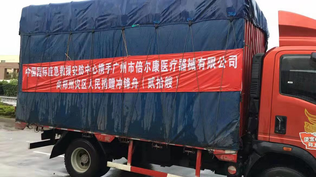 倍爾康此次捐助了30多萬元的救災物資——20件沖鋒舟、救生衣160件、對講機25臺,這些物資都已抵達給河南災區(qū)。