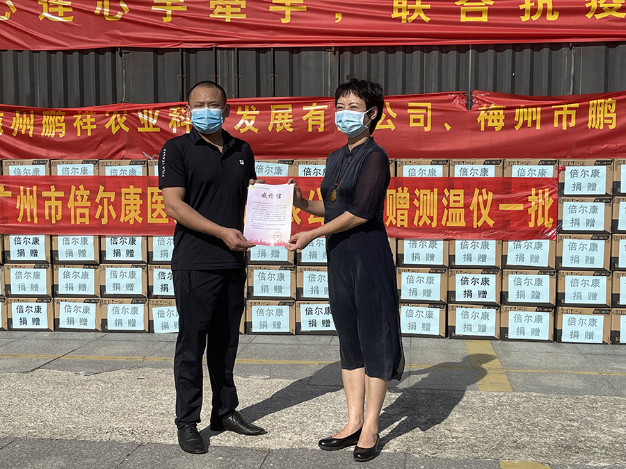 圖片2021年6月向廣州番禺捐贈(zèng)體溫計(jì),左1為郭智超先生