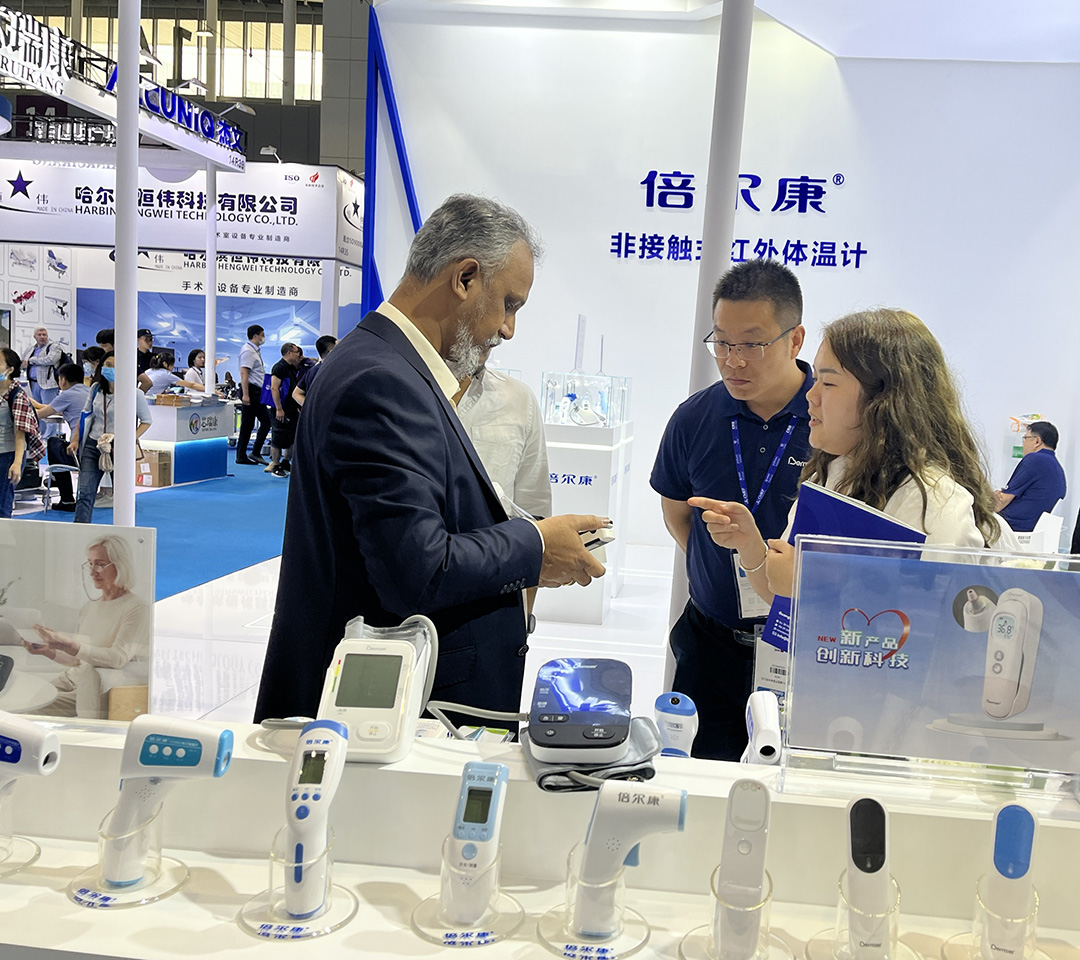 與此同時(shí),倍爾康常青產(chǎn)品,展出的DT醫(yī)用體溫計(jì)、JXB非接觸式紅外體溫計(jì)、ET紅外耳溫計(jì)等系列產(chǎn)品,囊括了家庭測溫和公共測溫兩大需求,引起了客商的熱烈關(guān)注。