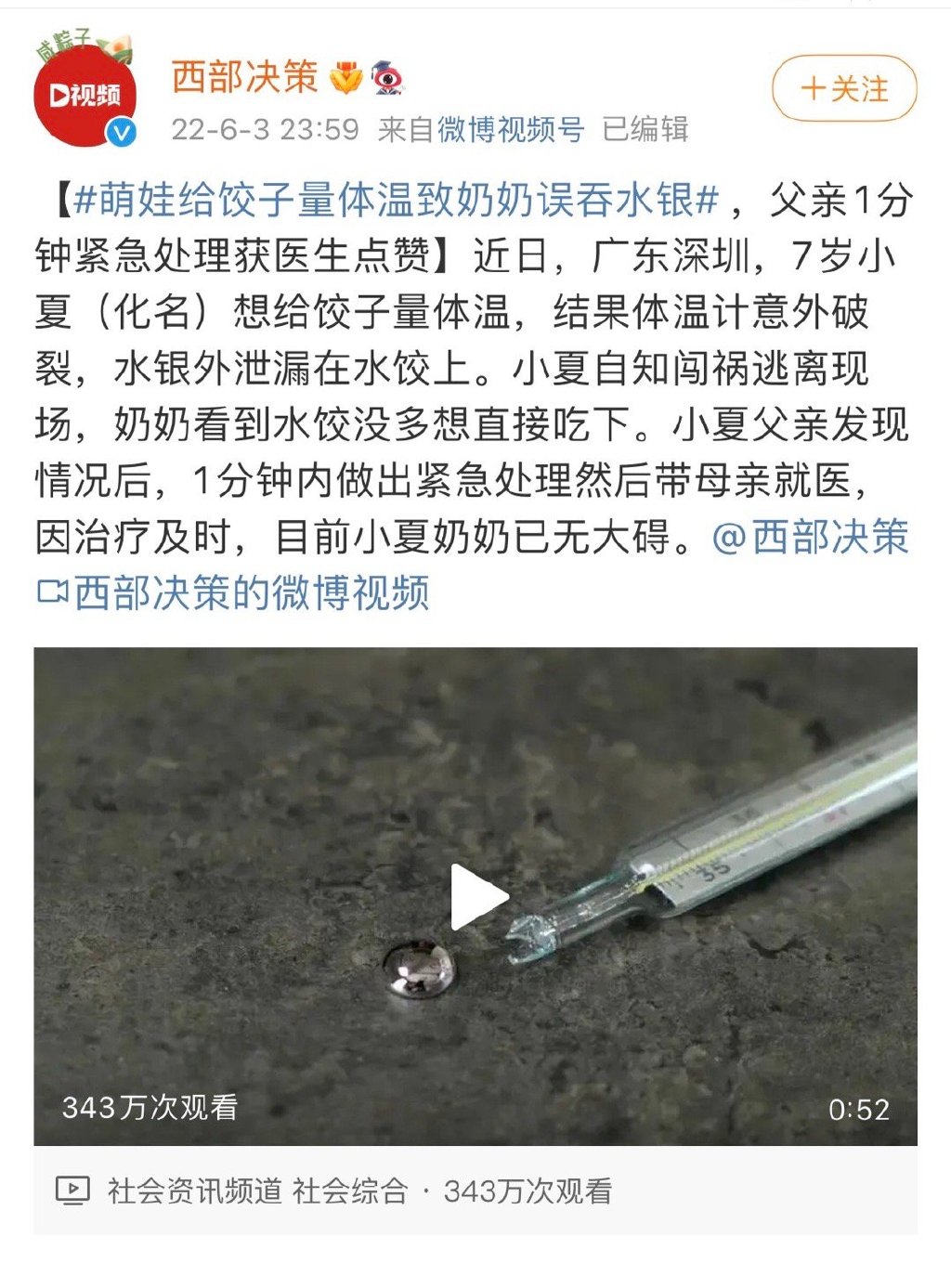 近日,一則“萌娃給餃子量體溫致奶奶誤吞水銀”的新聞沖上了熱搜: